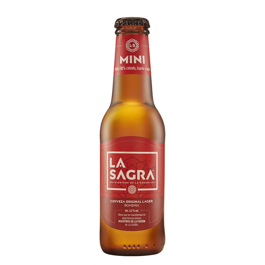 Cerveza de estilo Lager, elaborada siguiendo el método tradicional checo bajo receta de LA SAGRA. De color oro, refrescante y con 100% malta de cebada.